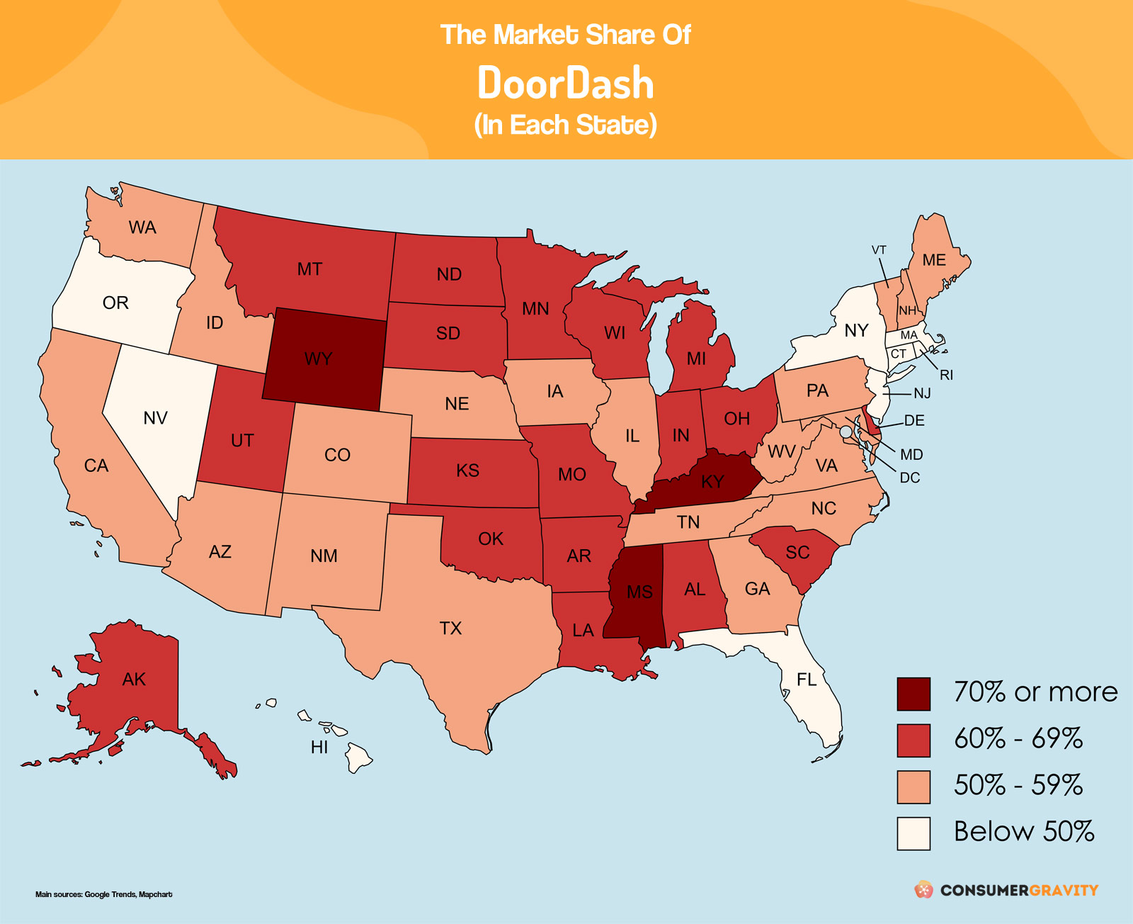While DoorDash is popular in urban areas, an analysis of DoorDash statistics by city shows that it is also very popular in smaller cities and rural areas, as the more detailed analysis below will reveal.