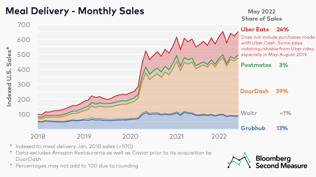 In the years since, DoorDash has rapidly overtaken Grubhub and all other competitors in market share, in particular curbing its closest recent competitor, UberEats.