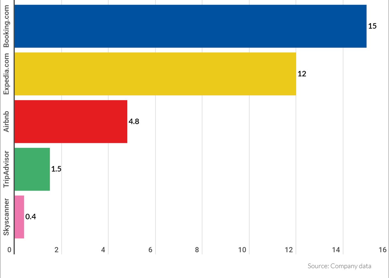 Booking.com is a highly popular vacation booking platform, as evident in its revenue, three times higher than Airbnb.