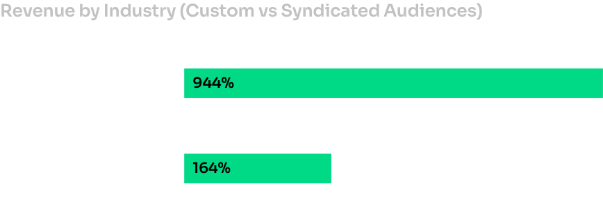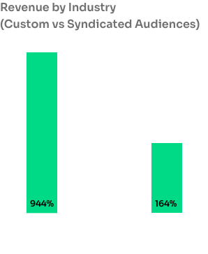 When examining revenue by verticals, custom segments played a very important role for Retargetly, mainly in Telco, with 100% of revenue generated through custom segments, and Financial services with 48%.